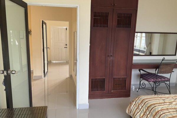 Master bedroom: king-size bed, wardrobe, aircon, en-suite bathroom.