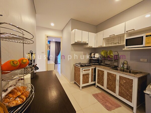 Touristic village North of Patong. Bars and restaurants for tourists, quiet beach, relaxing atmosphere. This resort is located 700 meters from the beach (as the crow flies) or within 5 minutes by car or taxi.Kitchen