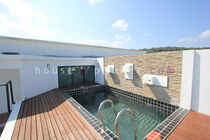 Roof terrace with pool and toilet.