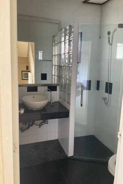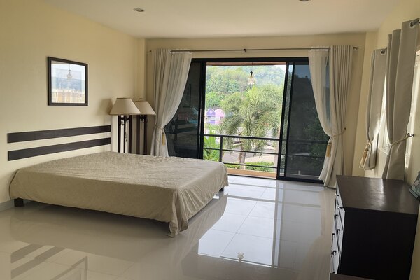 Master bedroom: king-size bed, wardrobe, aircon, en-suite bathroom.