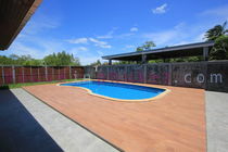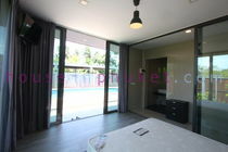 Master bedroom: king-size bed, wardrobe, aircon, en-suite bathroom with hot shower, sliding doors to the pool.